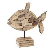 Statuette Déco Bois Poisson sur Pied 40cm Beige