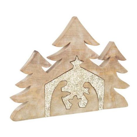 Statuette Déco Bois Puzzle Nativité 54cm Or