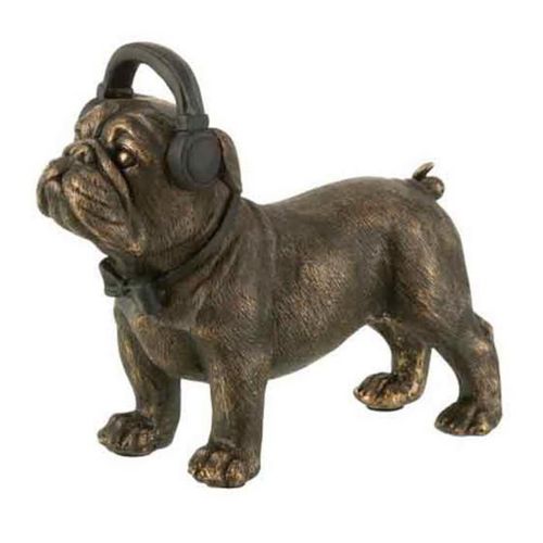 Statuette Déco Bulldog avec Casque 20cm Marron
