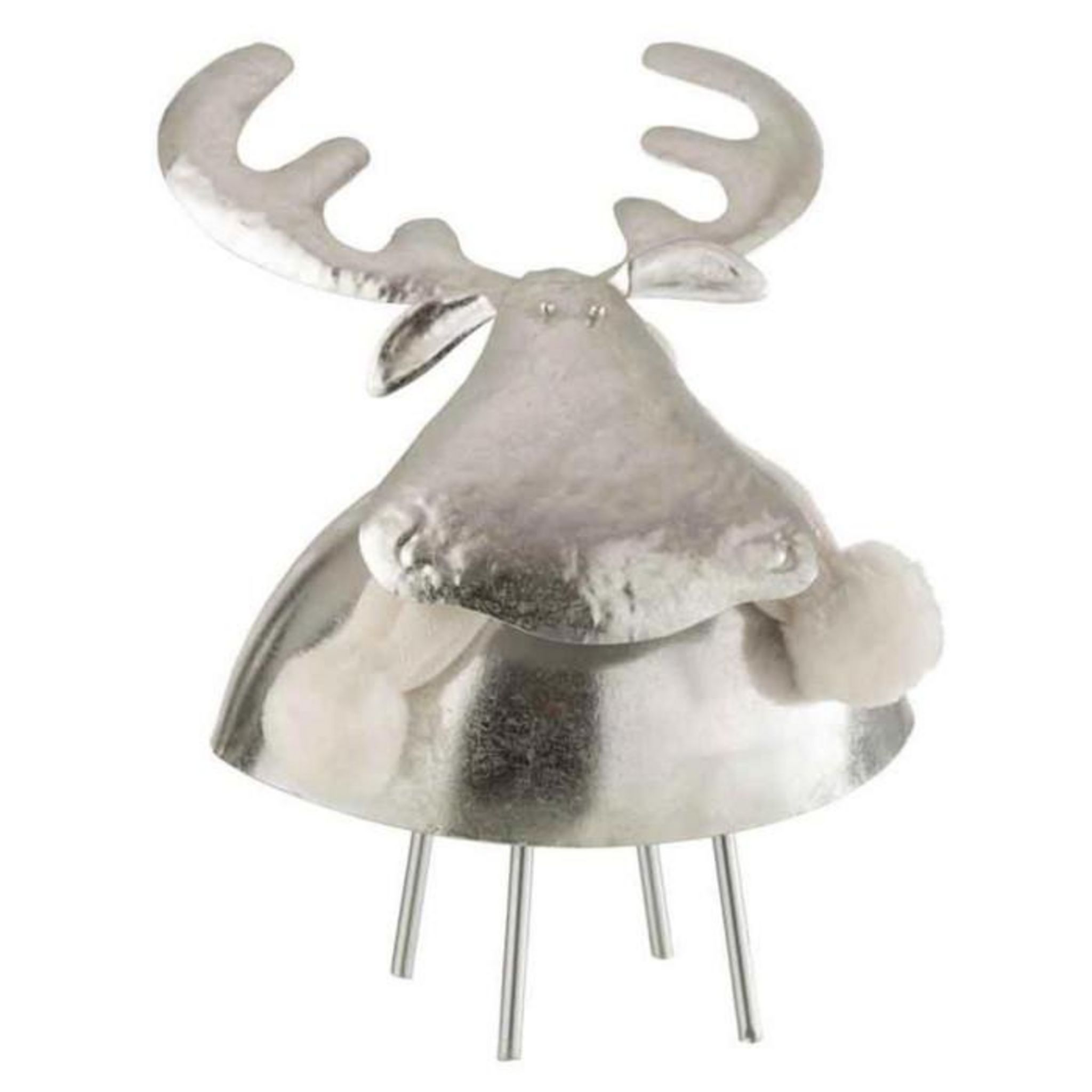 Informations Techniques : Dimensions : L. 24 x l. 21,5 x H. 24,5 cm Matières : Métal & Textile Spécificités : Pratique & Chic Statuette Déco Design Cerf A Poser Poids : 0,63 kg Couleur : Argent & Blanc