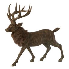 Informations Techniques : Dimensions : L. 39 x l. 18 x H. 39 cm Matière : 98% Polyrésine & 2% Polyester Spécificités : Déco & Hivernale Statuette cerf déco Détail imitation fourrure Vendu à l'unité Poids : 1,03 kg Couleur : Marron