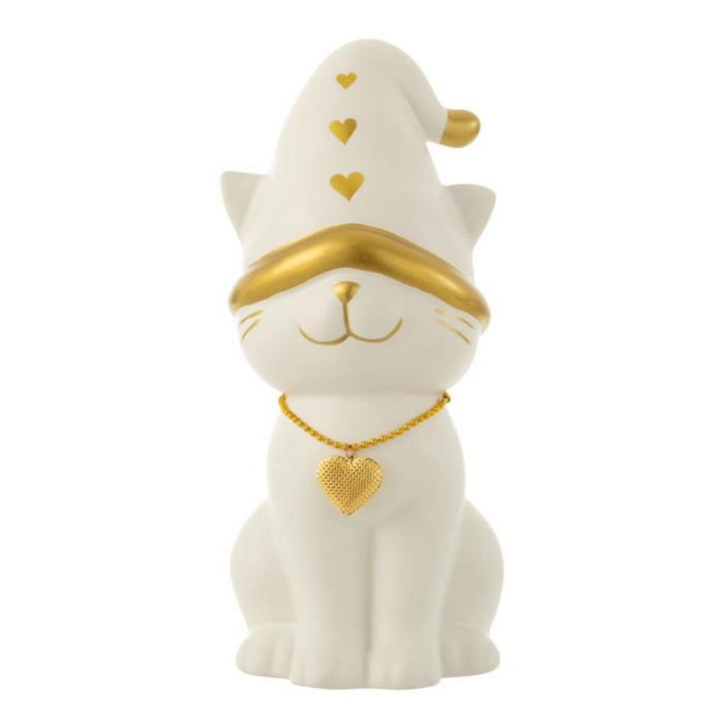Statuette Déco Chat Cœur 29cm Blanc