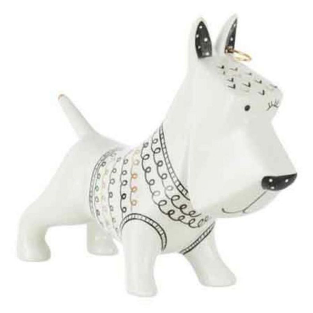 Statuette Déco Chien avec Pull 22cm Blanc & Noir