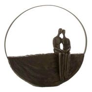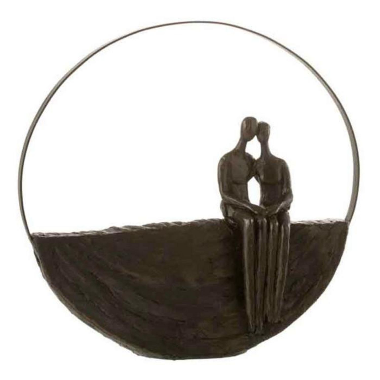 Statuette Déco Couple Assis Cercle 29cm Marron