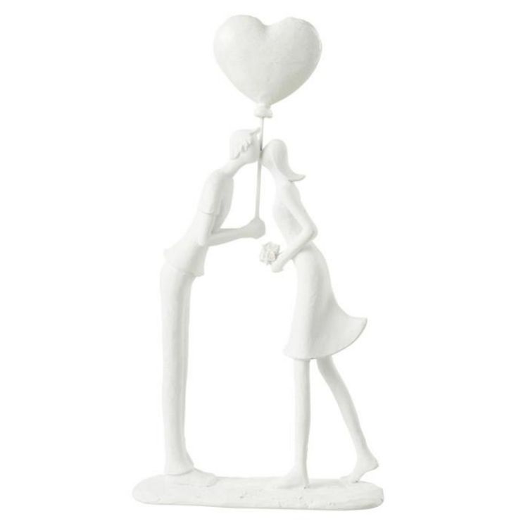 Statuette Déco Couple Bisou Cœur 30cm Blanc