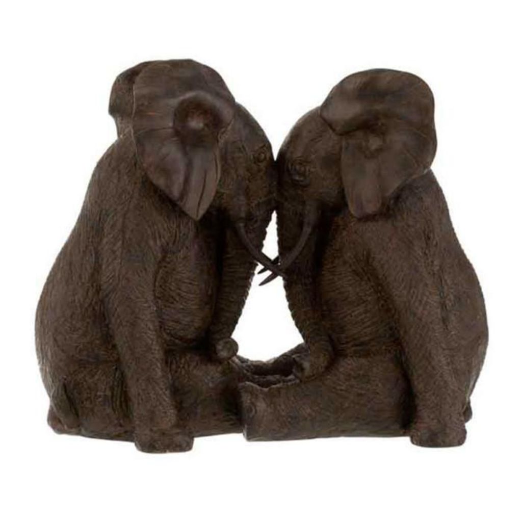 Statuette Déco Couple d'Éléphants 38cm Marron