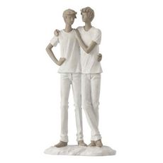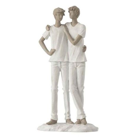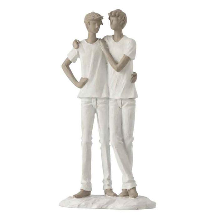 Statuette Déco Couple de Garçons 26cm Blanc