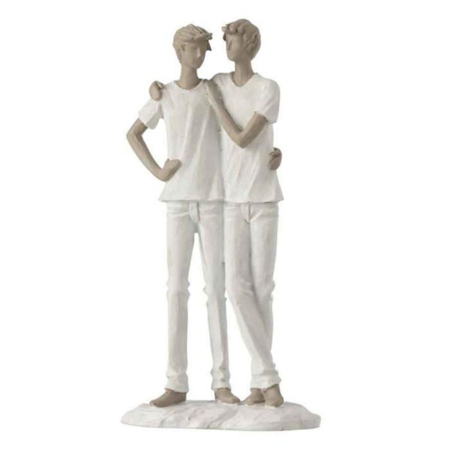 Informations Techniques : Dimensions : L. 7,5 x l. 13,5 x H. 26 cm Matière : Résine Spécificités : Tendance & Moderne Statuette Déco Design Couple de Garçons Poids : 0,32 kg Couleur : Blanc & Taupe