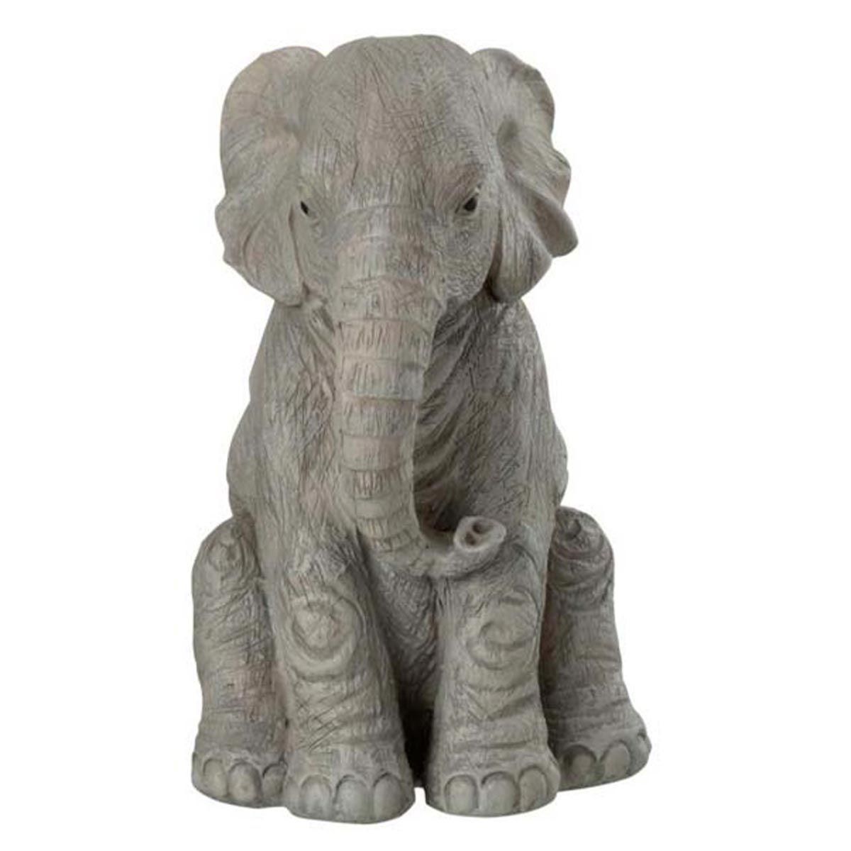 Statuette Déco Éléphant Assis 24cm Gris