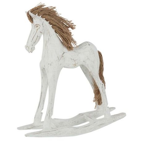 Statuette Déco en Bois Cheval à Bascule 35cm Blanc