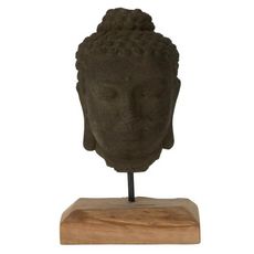 Informations Techniques : Dimensions : L. 25 x l. 18 x H. 44 cm Matières : 40% Ciment, 40% Bois (Teck) & 20% Résine Spécificités : Authentique & Unique Statuette tête déco Sur socle en bois Poids : 11,08 kg Couleur : Noir & Naturel
