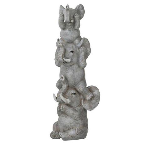 Informations Techniques : Dimensions : L. 11,5 x l. 11 x H. 32 cm Matière : Résine Spécificités : Design & Original Statuette Déco 3 Éléphants Entendre, Voir & se Taire Poids : 0,64 kg Couleur : Gris
