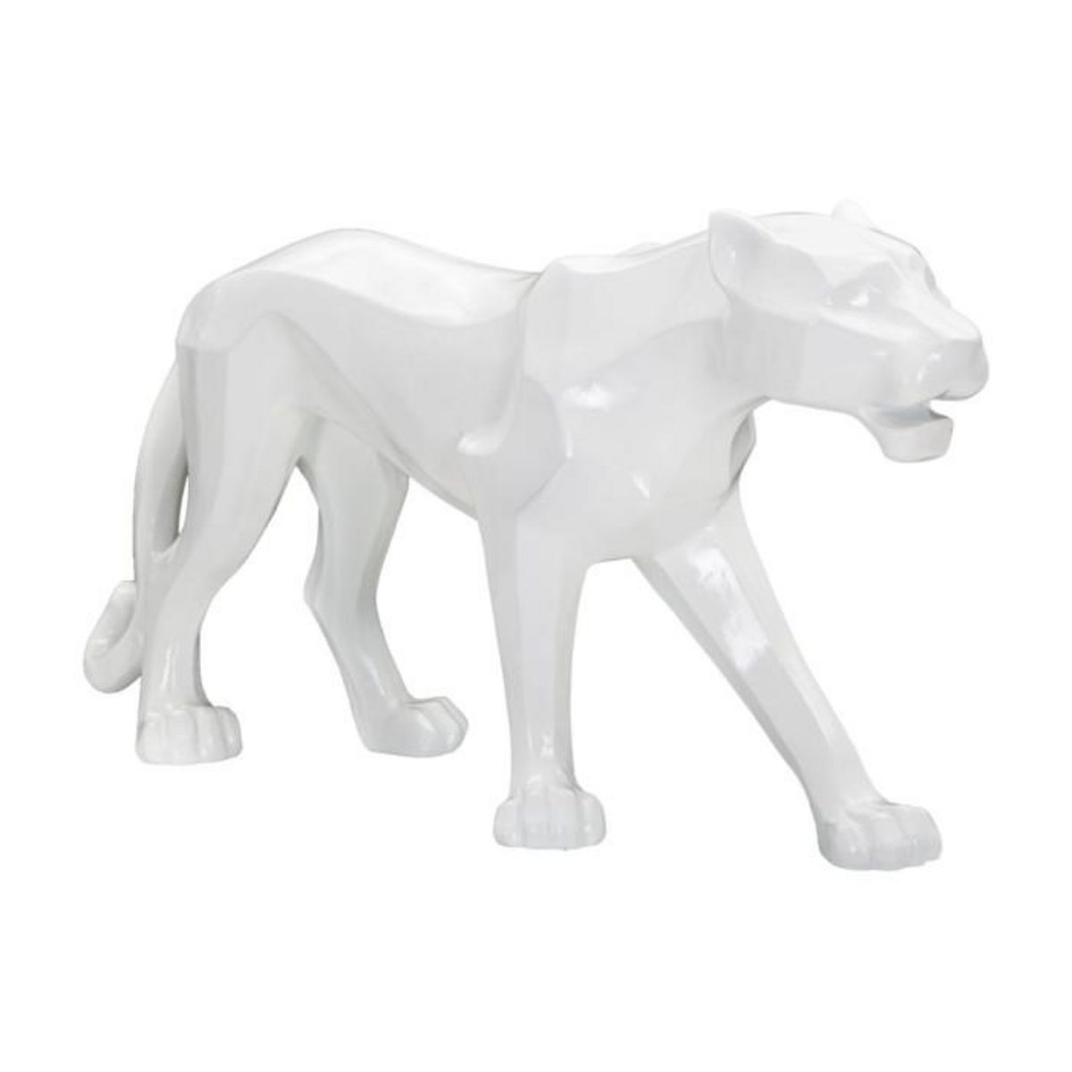 Informations Techniques : Dimensions : L. 70 x l. 18 x H. 32,5 cm Matière : Polyrésine Spécificités : Déco & Moderne Statuette panthère Design géométrique Poids : 2,6 kg Couleur : Blanc