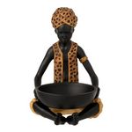 Statuette Déco Garçon Assis 26cm Noir & Naturel
