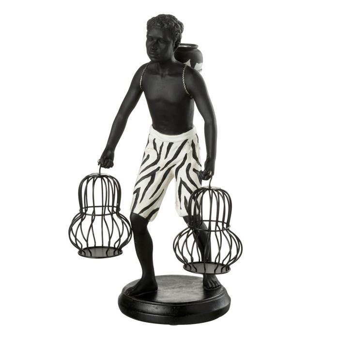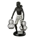 Statuette Déco Garçon Debout Panier 31cm Noir