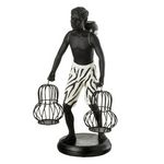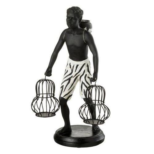 Informations Techniques : Dimensions : L. 21,5 x l. 16,5 x H. 31,5 cm Matière : Polyester Spécificités : Déco & Pratique Statue ethnique Garçon debout avec panier Poids : 1,01 kg Couleur : Noir