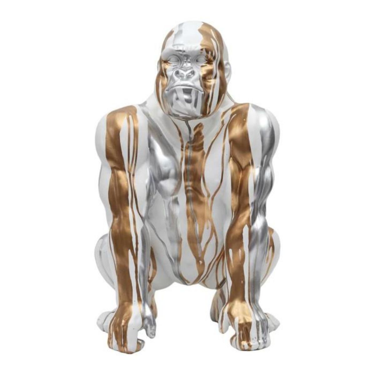 Informations Techniques : Dimensions : L. 29,5 x l. 28 x H. 45 cm Matière : Polyrésine Spécificités : Chic & Tendance Statuette déco Design Gorille Avec peinture doré et argenté coulante Poids : 3,1 kg Couleur : Blanc