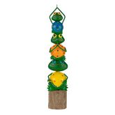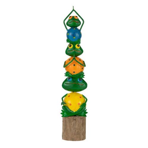 Informations Techniques : Dimensions : L. 10 x l. 9 x H. 43 cm Matières : 80% Métal & 20% Bois (Eucalyptus) Spécificités : Originale & Déco Pyramide de grenouille Sur pied Vendue à l'unité Poids : 0,66 kg Couleur : Multicolore