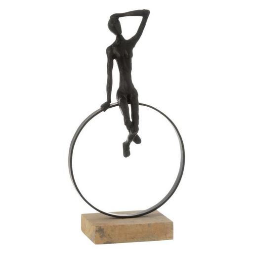 Informations Techniques : Dimensions : L. 21 x l. 11 x H. 40 cm Matières : 40% Polyrésine, 40% Métal & 20% Bois (Manguier) Spécificités : Design & Épurée Statuette déco sur socle Design homme sur anneau Poids : 1,09 kg Couleur : Noir