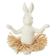 Statuette Déco Lapin Assis Yoga 21cm Blanc