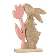 Statuette Déco Lapin Fleur 27cm Rose & Beige