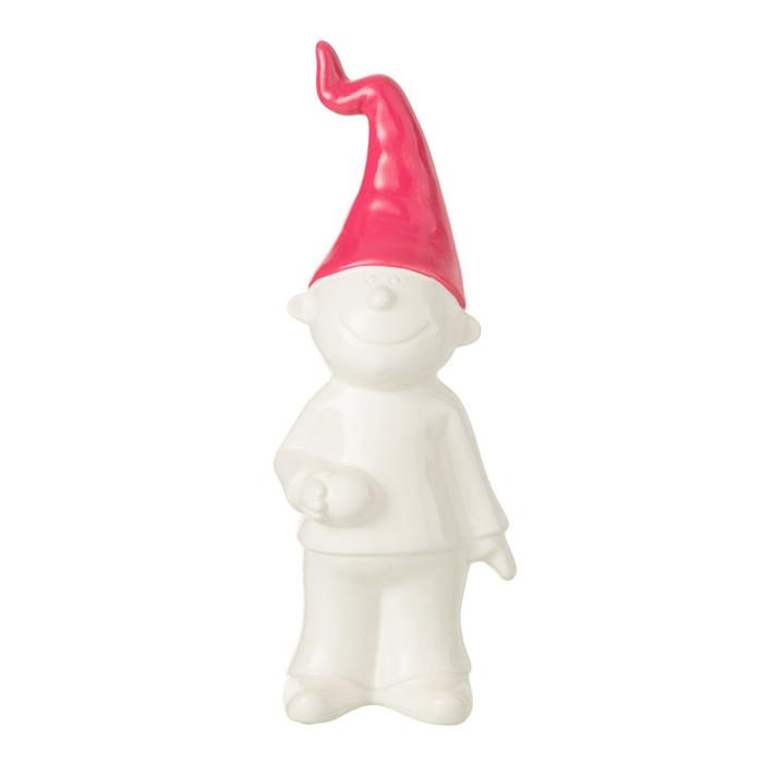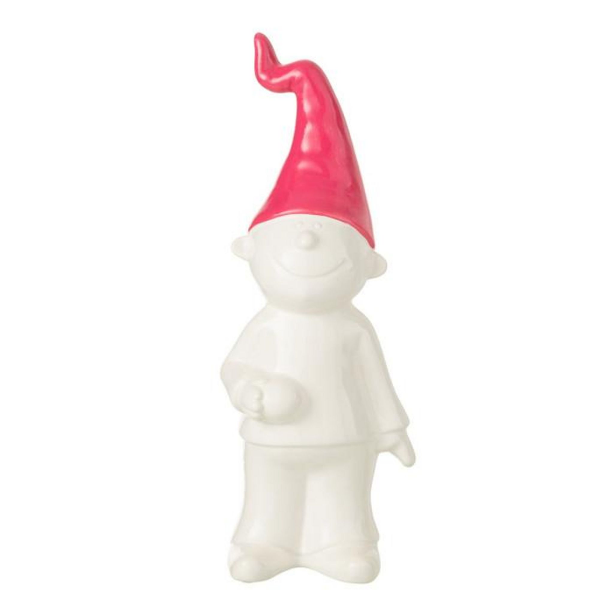 Statuette Déco Nain 40cm Blanc & Fuchsia