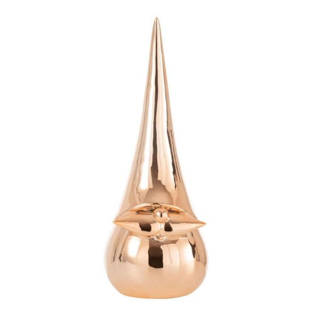 Informations Techniques : Dimensions : D. 13 x H. 34 cm Matière : Porcelaine Spécificités : Moderne & Originale Statuette décorative Design père noël Poids : 0,69 kg Couleur : Cuivre