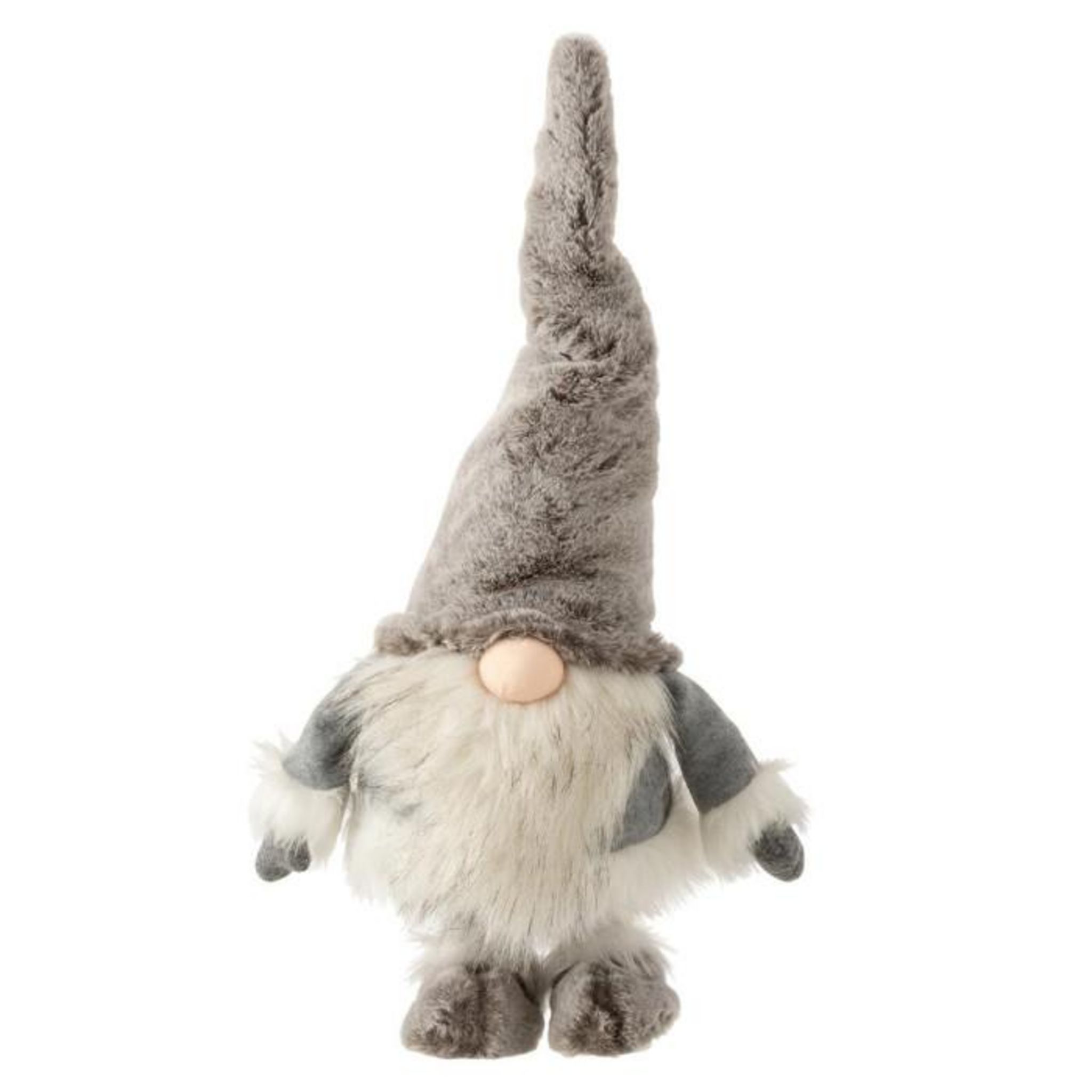Informations Techniques : Dimensions : L. 34 x l. 33 x H. 48 cm Matière : Textile Spécificités : Design & Moderne Statuette Déco Design Père Noël Debout qui Bouge Texture Peluche Poids : 0,53 kg Couleur : Gris & Blanc