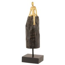 Informations Techniques : Dimensions : D. 10 x H. 35,5 cm Matières : Bois (Manguier) & Aluminium Spécificités : Tendance & Pratique Statuette Déco Design Personnage Assis Poids : 0,828 kg Couleur : Noir & Or