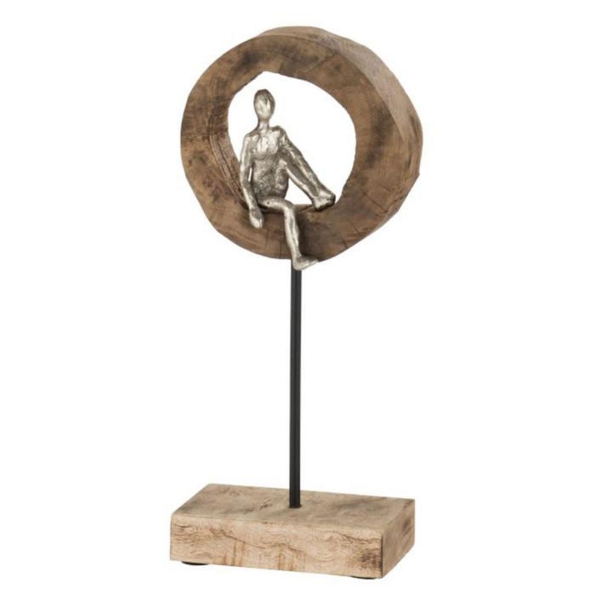 Informations Techniques : Dimensions : L. 18 x l. 9 x H. 39 cm Matières : Bois (Manguier) & Aluminium Spécificités : Design & Chic Statuette Déco Personnage Pensif Facile d'entretien & d'utilisation Poids : 1,02 kg Couleur : Naturel & Argent