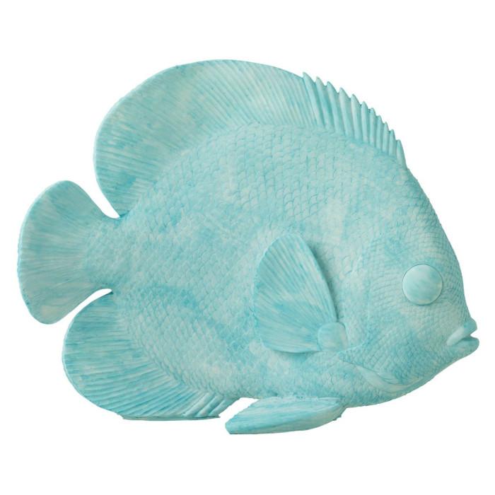 Statuette Déco Poisson Plat 29cm Bleu Azur