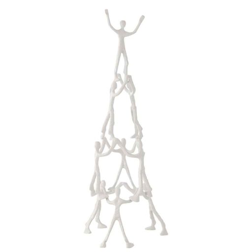 Informations Techniques : Dimensions : L. 28 x l. 28 x H. 73 cm Matière : Aluminium Spécificités : Tendance & Moderne Statuette Déco Forme Ronde Design Pyramide de 9 Personnages Poids : 1,6 kg Couleur : Blanc