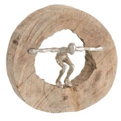 Informations Techniques : Dimensions : L. 29 x l. 12 x H. 27,5 cm Matières : Bois & Aluminium Spécificités : Design & Moderne Statuette déco Forme ronde Style contemporain Facile d'entretien & d'utilisation Poids : 3 kg Couleur : Naturel & Argent