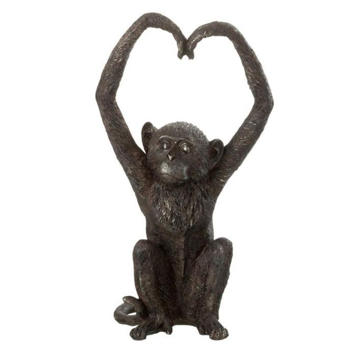 Informations Techniques : Dimensions : L. 18 x l. 14,5 x H. 33 cm Matière : Polyester & Carbonate de calcium Spécificités : Déco & Esthétique Statuette Réaliste En forme de singe Poids : 0,69 kg Couleur : Marron