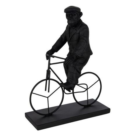 Statuette Déco Singe Vélo 33cm Noir