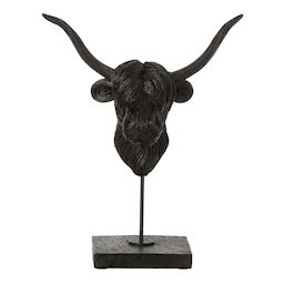 Informations Techniques : Dimensions : L. 29,5 x l. 14 x H. 36,5 cm Matière : Résine Spécificités : Tendance & Pratique Statuette sur Pied Design Tête de Buffle Poids : 0,99 kg Couleur : Noir