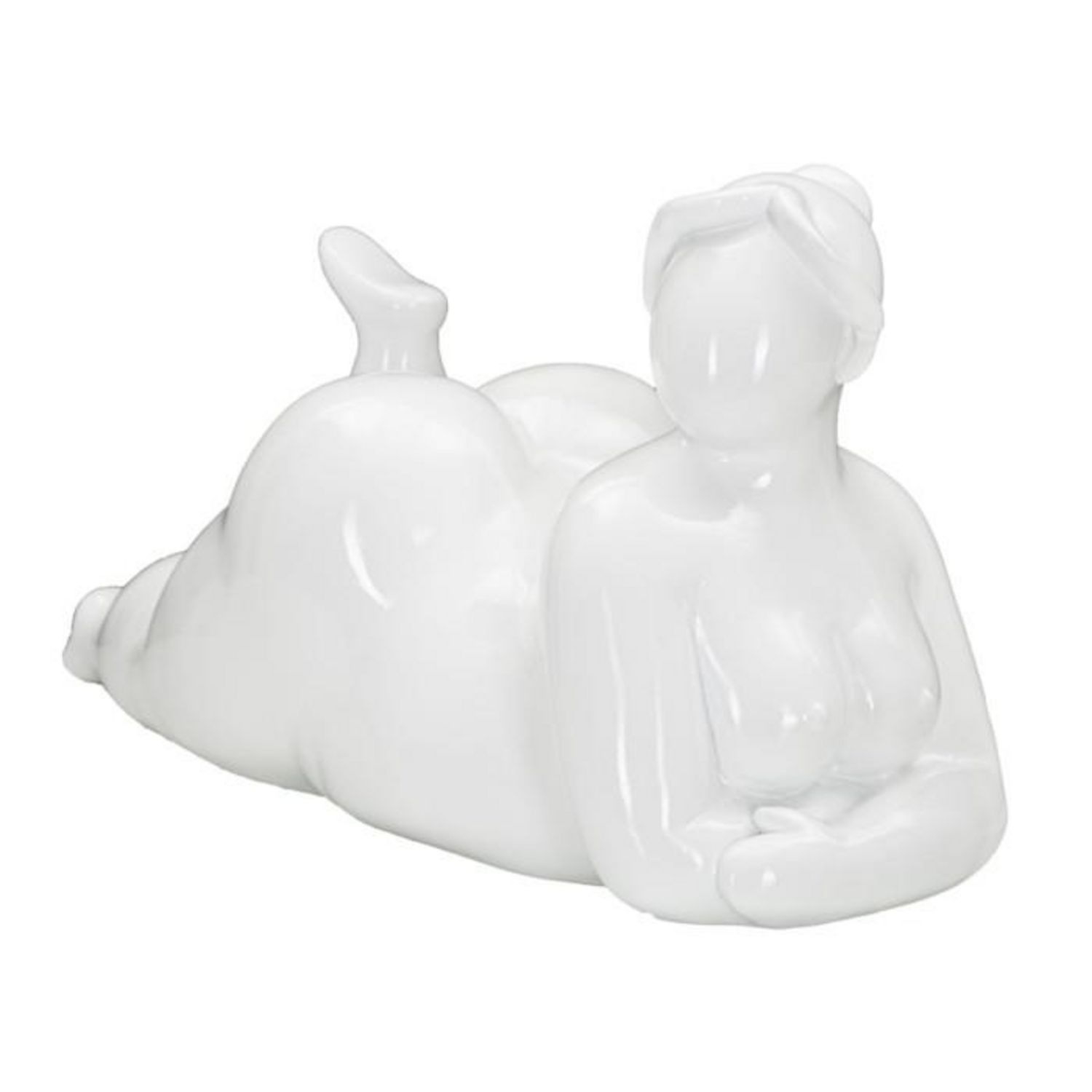 Statuette Femme Couchée en Résine Yoga 32cm Blanc