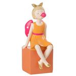 Statuette Fille Assis Bulle 20cm Orange & Rose