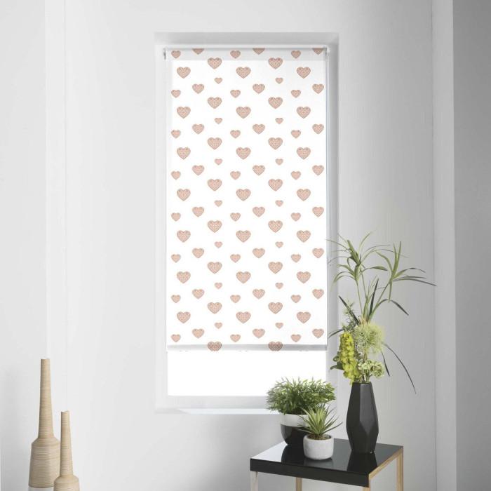 Informations Techniques : Dimensions : L. 120 x H. 180 cm Matière : Polyester Spécificités : Élégant & chic Effet tamisant Imprimé coeurs Enrouleur Poids : 0,65 kg Couleur : Or & Rose