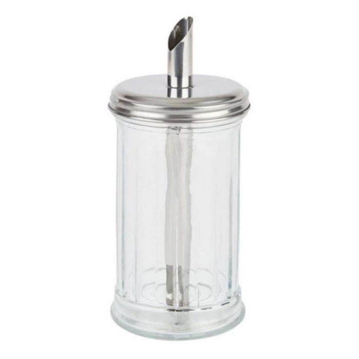 Informations Techniques : Dimensions : D. 7,5 x H. 17,5 cm Matières : Inox & Verre Spécificités : Pratique & Utile Sucrier Doseur Forme Ronde Avec Bec Verseur Contenance : 275 ml Poids : 0,33 kg Couleur : Transparent & Argent