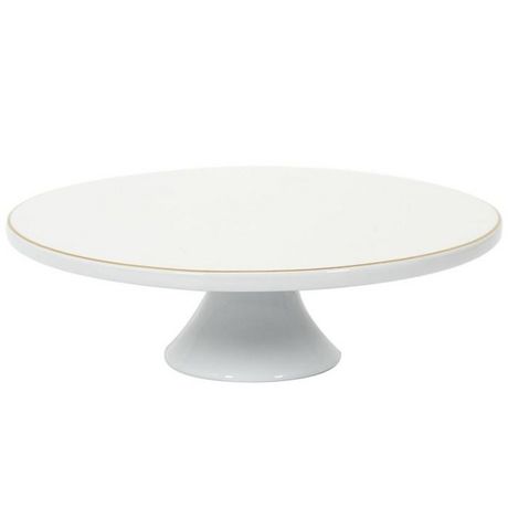 Informations Techniques : Dimensions : D. 31 x H. 10 cm Matières : Céramique & Porcelaine Spécificités : Chic & Élégant Support à Gâteau Design Liseré Doré Forme Ronde Facile d'Utilisation Poids : 1,887 kg Couleur : Blanc & Or