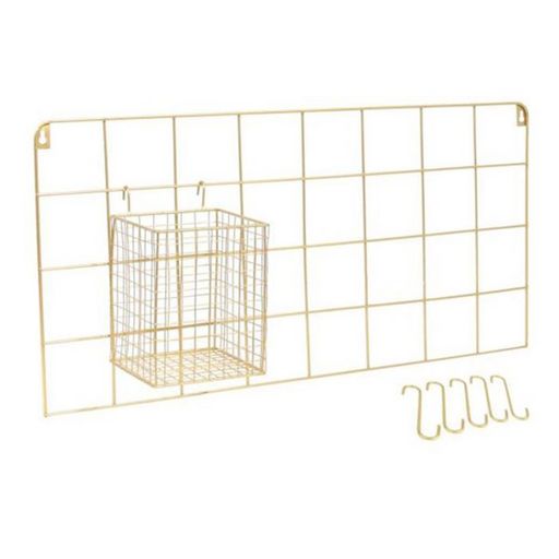 Informations Techniques : Dimensions : L. 60 x l. 12,5 x H. 30 cm Matières : Métal & Acier inoxydable Spécificités : Pratique & Utile Support Mural Contient 4 Crochets & Pot amovible Visserie non incluse Couleur : Or