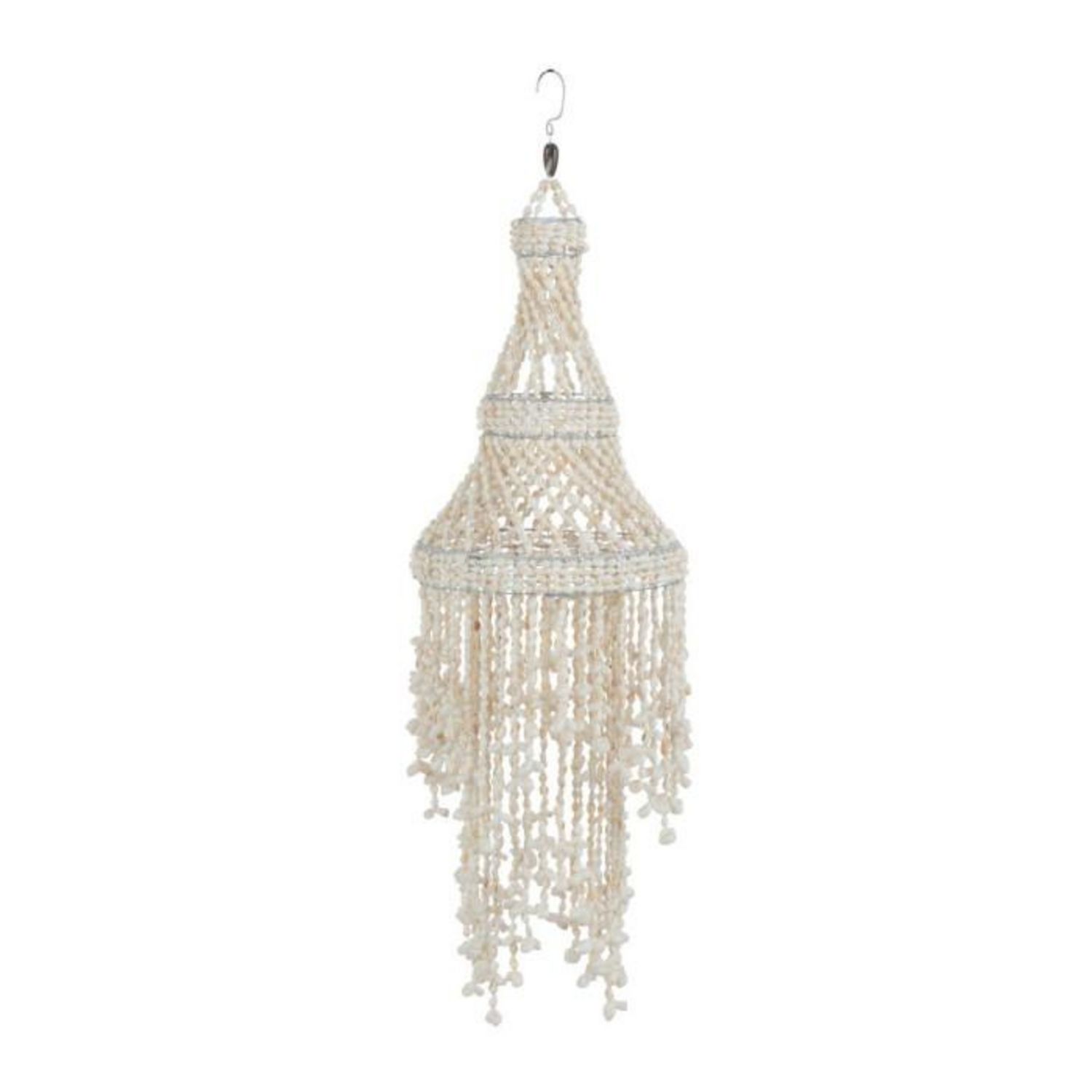 Informations Techniques : Dimensions : L. 20 x l. 20 x H. 70 cm Matières : 90% Coquillages & 10% Métal Spécificités : Pratique & Tendance Suspension déco Design château Poids : 0,7 kg Couleur : Blanc