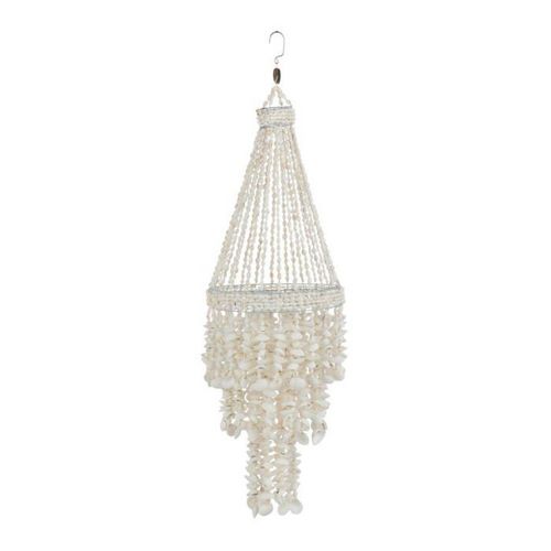 Informations Techniques : Dimensions : L. 20 x l. 20 x H. 70 cm Matières : 90% Coquillage & 10% Métal Spécificités : Pratique & Tendance Suspension déco Design palais Poids : 0,71 kg Couleur : Blanc