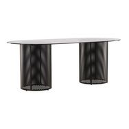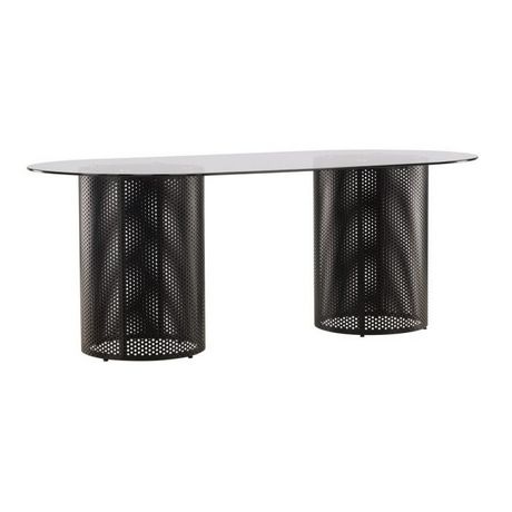 Informations Techniques : Dimensions : L. 200 x l. 100 x H. 75 cm Matières : Plateau : Verre Piètement : Acier Spécificités : Pratique & Tendance Table à manger Designée par Josefin Lustig Jusqu'à 6 couverts Pieds cylindrique Style industriel Forme ovale Poids max supporté : 150 kg Nombre de colis