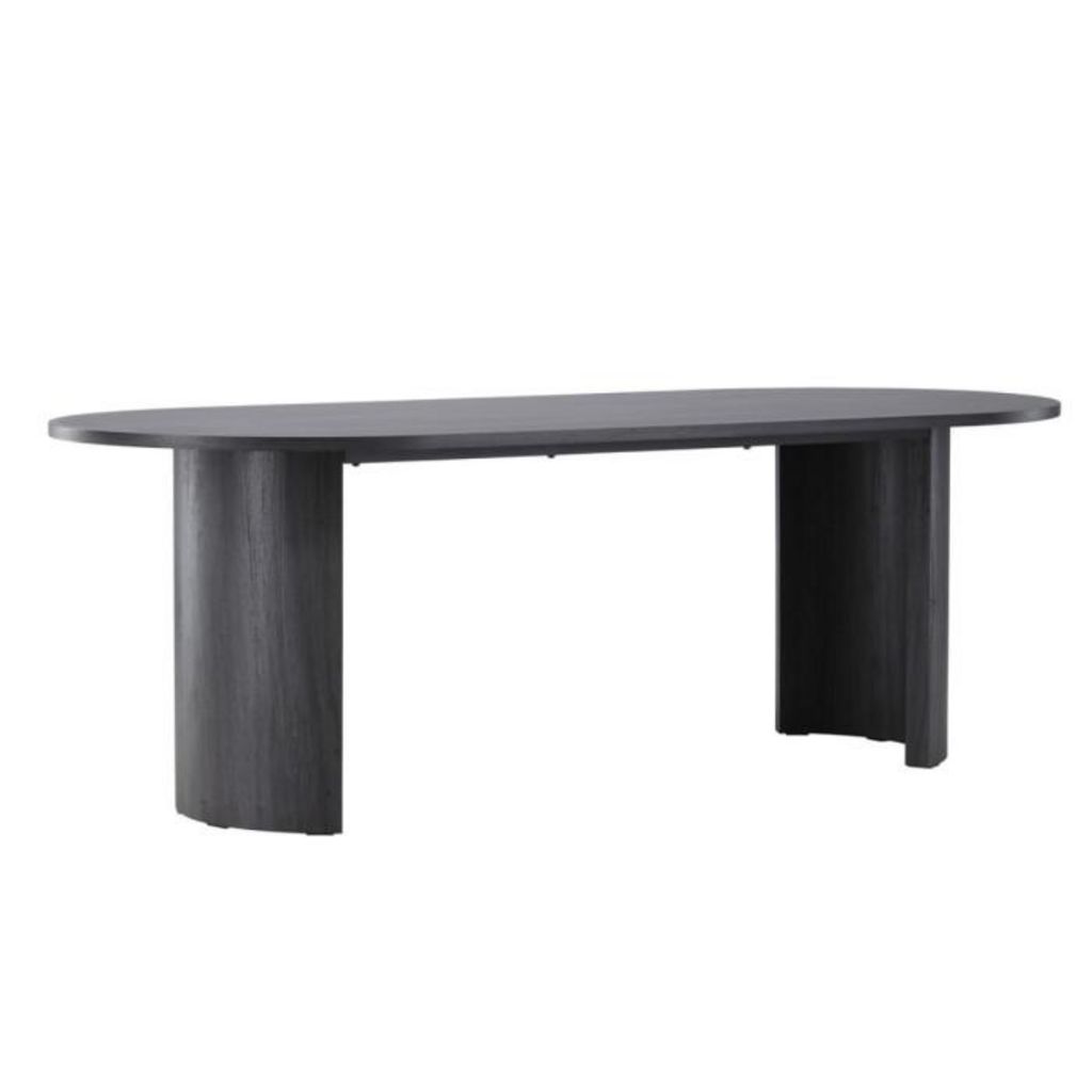 Informations Techniques : Dimensions : L. 220 x l. 100 x H. 75 cm Plateau : H. 3 cm Matière : MDF Spécificités : Contemporaine & Élégante Table de repas ovale Jusqu'à 6 personnes Certifié FSC Poids : 49,85 kg Couleur : Noir