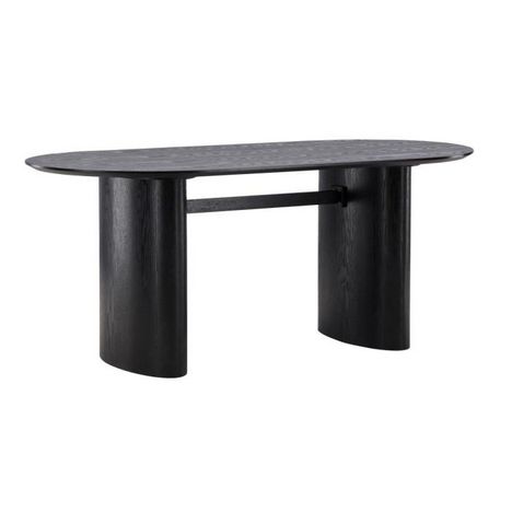 Informations Techniques : Dimensions : L. 180 x l. 90 x H. 75 cm Plateau : H. 2,5 cm Matière : MDF Spécificités : Pratique & Tendance Table à manger design Jusqu'à 6 couverts Revêtement placage effet bois Forme ovale Nombre de colis : 2 Capacité de charge maximale : 120 kg Poids : 45 kg Couleur : N