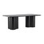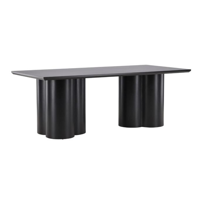 Informations Techniques : Dimensions : L. 210 x l. 100 x H. 76,5 cm Plateau : H. 4 cm Matière : MDF Spécificités : Pratique & Tendance Table à manger design Jusqu'à 4-6 couverts Double pied composé de 3 cylindres Revêtement de surface : papier 3D Forme rectangulaire Nombre de colis : 3 Poids max sup