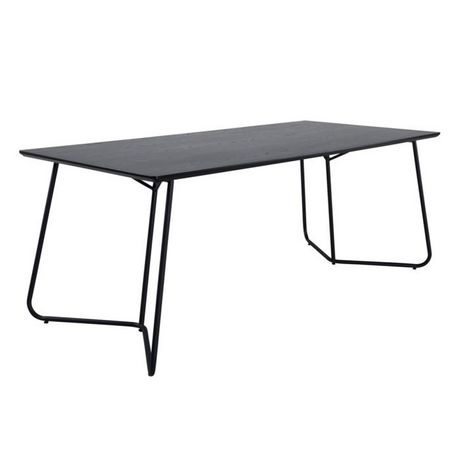Informations Techniques : Dimensions : L. 190 x l. 90 x H. 75 cm Plateau : H. 2,5 cm Matières : Plateau : MDF & Placage Piètement : Acier Spécificités : Pratique & Tendance Table à manger design Avec pieds triangulaire Jusqu'à 6 couverts Revêtement en poudre noire Forme rectangulaire Nombre de col