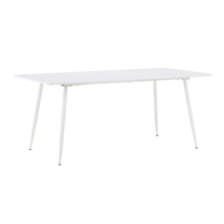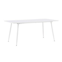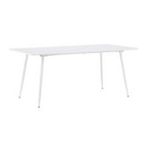 Informations Techniques : Dimensions : L. 180 x l. 90 x H. 75 cm Matières : Plateau : MDF Piètement : Acier Spécificités : Pratique & Tendance Table à manger design Jusqu'à 4 couverts Revêtement en poudre blanche Forme rectangulaire Nombre de colis : 2 Poids max supporté : 100 kg Poids : 25,5 kg Co